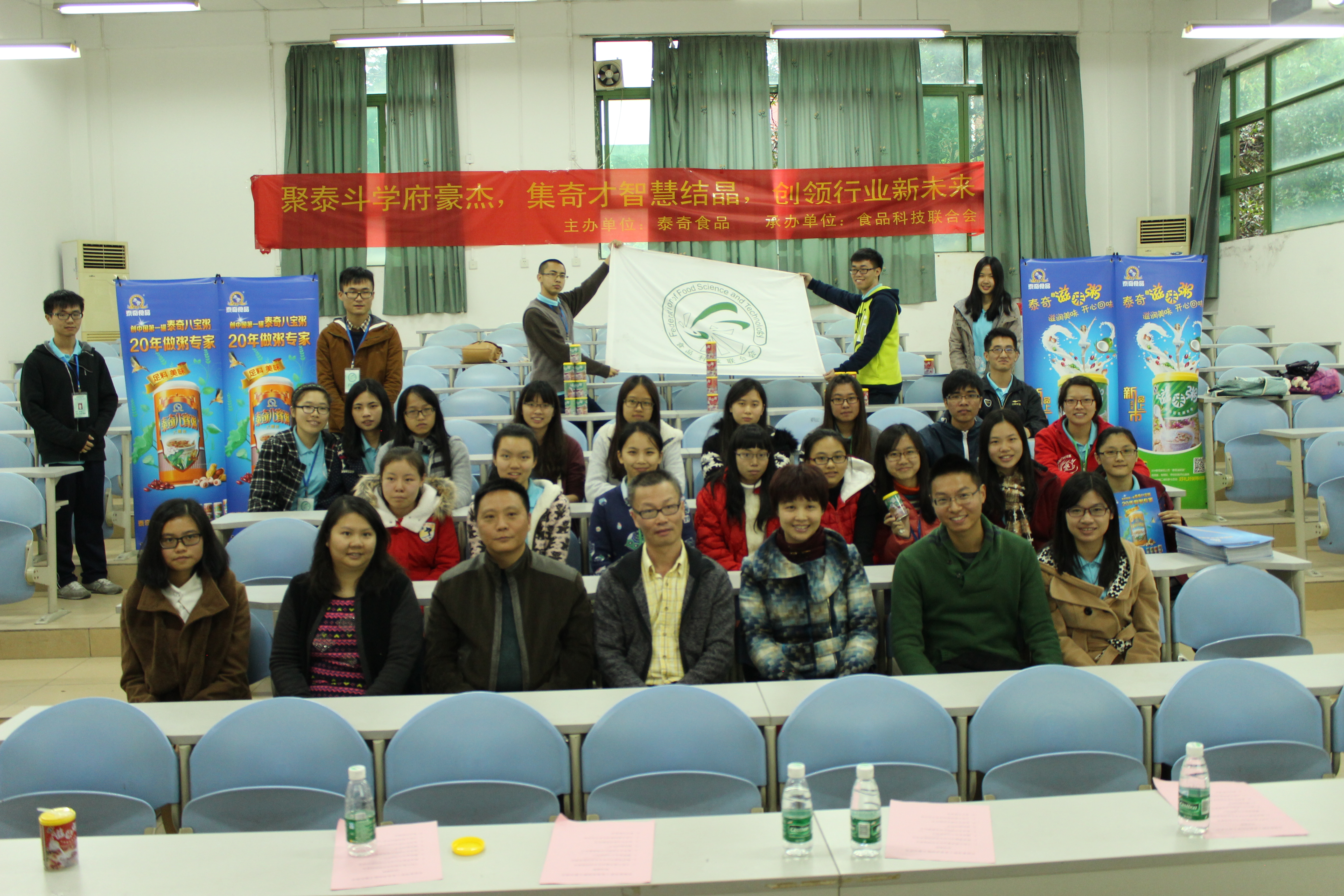 12月7日下午,由泰奇食品有限公司主办的首届“泰奇杯”工业食品创新大赛宣讲会在华南农业大学食品学院院楼212教室举行。出席本次宣讲会的嘉宾有:泰奇市场部总监唐洁薇,泰奇集团总经理黄毅,泰奇生产基地厂长朱伟雄,泰奇市场部品牌经理莫卿馨以及华南农业大学食品学院辅导员陈巍老师。
