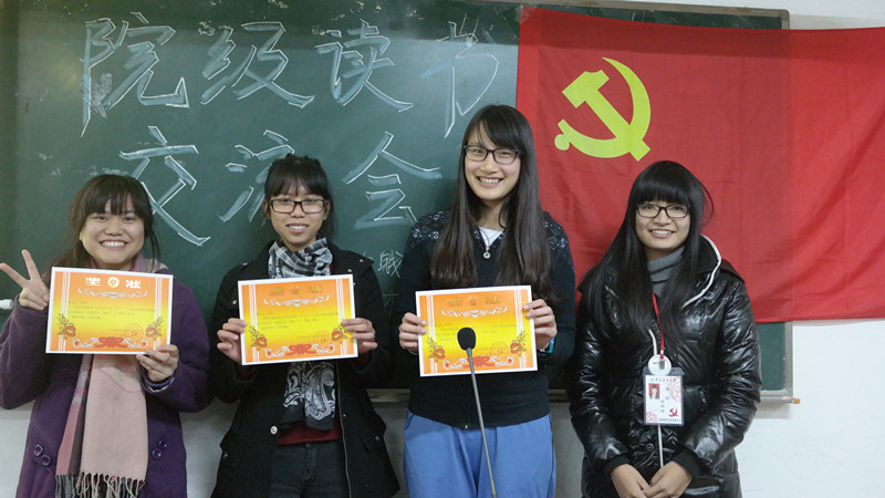 12月14日晚,食品学院2014年第二期入党宣誓仪式暨预备党员“六个一”工程启动仪式于院楼314成功举行。院党委副书记鲍金勇,党委信息中心指导老师、全体学生党支部书记及61名新党员参加本次活动。在新党员刘铮同学的领誓下,全体预备党员庄严宣誓,表示永忠于党。21日晚,2013年第二期的预备党员“六个一”工程之“研读一本经典”院级读书交流会在院楼516举行,55名党员参与本次交流会。各读书小组轮流上讲台分享读书心得体会,第五小组代表在分享《邓小平文选》时说道,“通过阅读这本书,我觉得邓小平善于总结过去,立足当下,而这正是我们需要学习的地方”。第三小组代表在读过《历史的轨迹——中国共产党为什么能》之后,总结道:“中国共产党知错能改,不断调整,这就是制胜的法宝。”