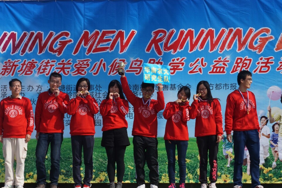 在新塘街道办事处主办的“关爱小候鸟助学公益跑”活动中,食品学院研究生第六党支部代表的华南农大研究生队以奔跑唤起社会对小候鸟健康成长的关注,最终以第一名的好成绩荣膺“最佳奔跑团队”奖。(文/食品学院 孙华 党委信息中心宣传部 图/食品学院党委信息中心宣传部)