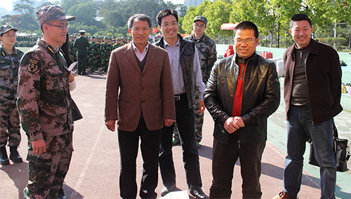 1月14日上午,艳阳普照大地,食品学院2014级新生的军事训练在启林南操场如火如荼地开展。阳光八营也迎来了院党委书记秦亮生,院长孙远明,党委副书记鲍金勇,副院长向红、柯松的到访。