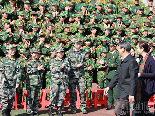 14天的军训已经跨过了新鲜期、过渡期进入了最后几天,同学们平常训练中没表现出来的情感也在1月22日上午的军训大合照中得到释放。食品学院党委书记秦亮生,院长孙远明,党委副书记鲍金勇,副院长柯松、黄苇,全体辅导员,各班班主任、助班、阳光员等一同出席三团八营军训大合照。