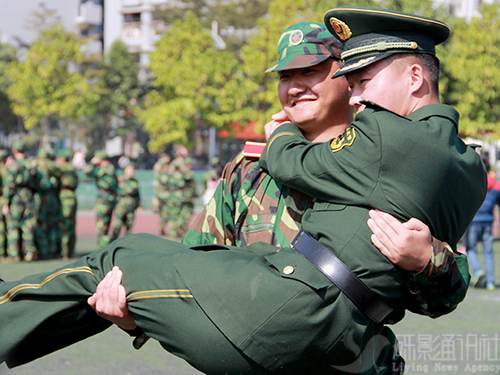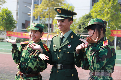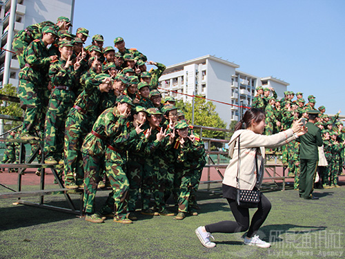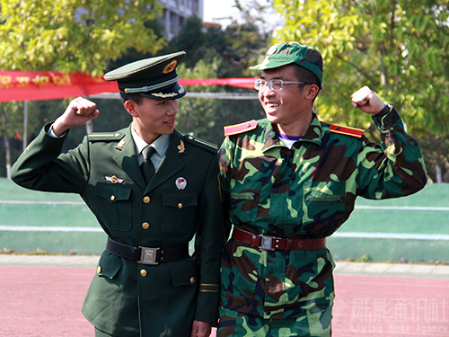 军训过去了十天,大多数同学也由开始的抗拒渐渐进入了不舍的阶段,其中一个原因便是舍不得他们的教官。按照华农惯例全体教官会在最后一天的会操进行过程中悄悄地离开,得知这个消息很多副排长都表示这两天开始准备给教官的礼物。合照留念自然是他们不会放过的机会,男生与教官互相“公主抱”、教官与学生一起“卖萌”等各种照片只要想得到都摆得出。三排长最心口不一,尽管嘴上拒绝着,但每次只要有人跟他合照,他都会露出标准的笑容,腼腆地出示剪刀手。九排长则默默地掏出手机给班里同学拍了好几张给自己留念。有句电影台词叫“喜欢就会放肆,但爱就是克制”,教官们的克制必定也有原因。