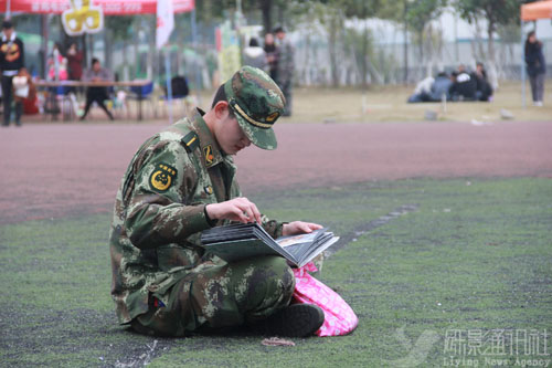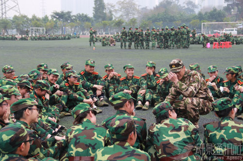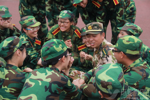 在所剩不多的时间里,各排不约而同地停止了训练,都紧紧地围坐在一起说着笑着。