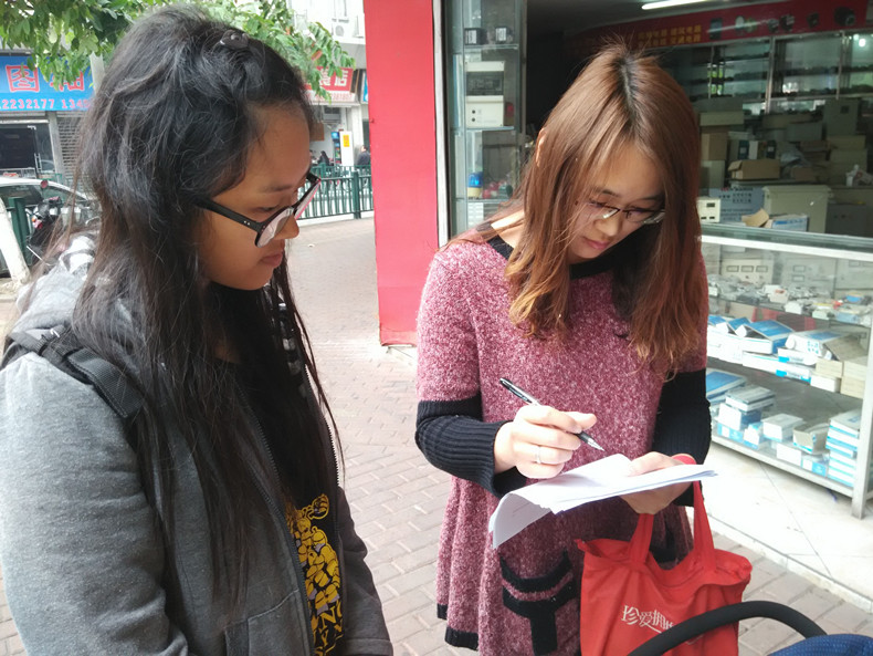 当天上午,经讨论决定好分工后,金榜牛乳问卷的派送正式开始。在问卷派发过程中,许多市民愿意停下匆匆的步伐帮队员们填写问卷。有街坊表示,“对于问卷调查,我肯定乐意帮助,特别是对于学生做调查更是欢迎。”还有街坊询问队员为什么要选择金榜牛乳做调查,队员们于是耐心而详细地向街坊介绍了寒假科技下乡活动,街坊们听后更是对队员们赞叹有加。