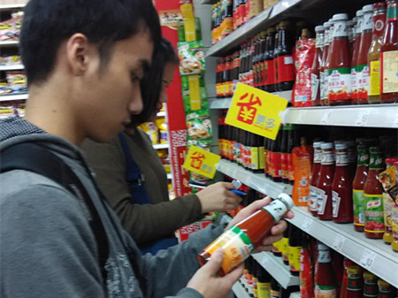 1月28号清晨,小探队的队员们按原定计划,一齐前往华润万家超市、家乐福超市进行转基因产品的标识情况调查。