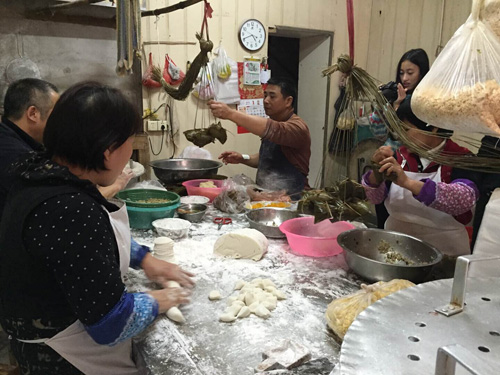 每年春节前,汕头各家各户都会提前准备丰富的年货,其中必定有各式粿品。在飘香小食店进行粿品调研时,店主耐心讲解了各种粿品的名称、制作方法及春节前的销量等情况。队员们发现,相比其他店铺,这间经营已逾半世纪的老字号不仅产品的制作工艺独具匠心,而且销售模式大胆创新,可谓是在时代变迁中传承经典的先锋。