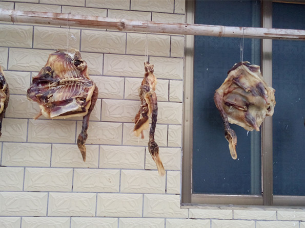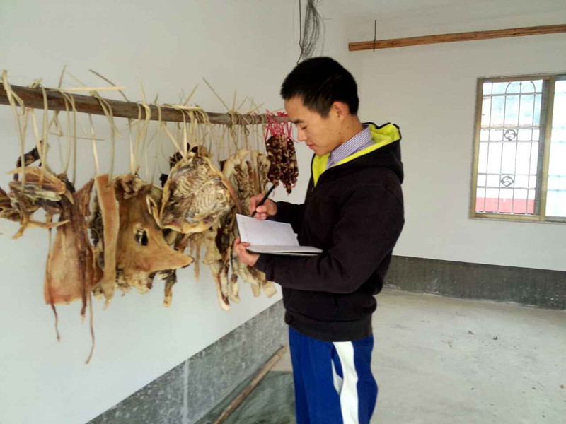 此时正处于腌制板鸭的季节,而且普通村民家都有腌制板鸭,这为调查工作的开展带来了一定的便利。队员在数次走访后,发现南雄本地人基本都喜欢吃板鸭这一种传统食品,并一致认为板鸭是一道过年必不可少的特色菜,老少皆宜。即使在外打工的本地人,也不会淡忘南雄板鸭的美味和制作方法,每次外出打工都要带上一两只板鸭。访问了一些村民之后,队员们了解到板鸭之所以被村民所喜爱,很大一部分原因是由于其自身天然无毒害,易保存,保质期长,正适合在冬天这种气候食用,所以家家户户在年前都会腌制。综上来看,要使板鸭打破地方的局限,冲出南雄成为各地的热门食品还是很有可能的。
