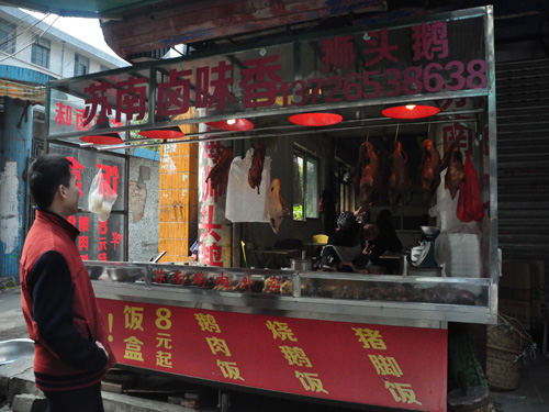 经过为期两天的卤鹅制作工艺调研,“爆竹声中”团队深刻认识到卤鹅制作过程中主要靠经验的不足之处,对此,团队五名成员于2月9日在汕头市金平区杏花街苏南卤味店开展以卤鹅为主题的深入采访活动,希望通过进一步了解卤鹅的发展和现状来寻找改善方案。。