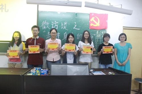 第12组有幸电话采访到老党员航天专家潘昭汉爷爷,他向积极分子们分享了自身的经历,“现在我已经80岁了,毕业后我为党和国家工作了50年了,依靠组织的指引与个人的努力,我感到我这条路走得对。……我现在还经常出去宣传我国航天事业的成就,如果你们学校有需要,我愿意到广州来讲航天”,他还建议大学生要坚定信念,明辨是非,将勤学、修德、明辨、笃实作为自己的座右铭。第2小组采访到因成绩优异而被保送到华南理工大学就读研究生的毕业生党员陈业宝同学,他提醒入党积极分子们要学会“凡事站在他人的角度思考,不要自私自利。”