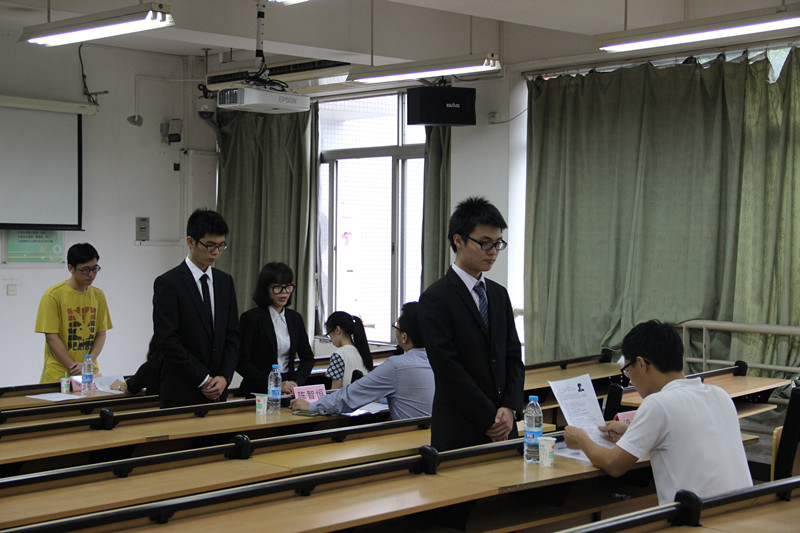 赛前不少同学提前来到等候室签到等候,待工作人员念到自己的号数由工作人员带领到相应课室进行面试。面试过程有条不紊,面试官对于面试者还是持客观态度,销售岗位的面试官陈元豪评价到“毕竟还是学生,对于面试技巧和和意识还是停留在学生组织或者社团面试的层面,如果是真正面试来讲,通过率不高,不过面试技巧还是都是不断磨练中才会有进步的。”面试营养质询的龙秉智则认为单面主要看态度,群面一是要有发言,二是要保证发言的质量。