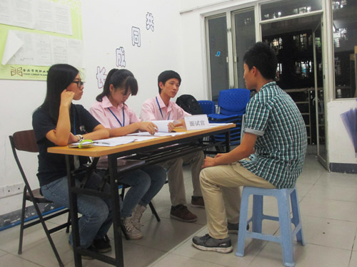 尽管考试月将至,面试者依旧热情不减。面试者刘楠告诉记者,“我发现我们机构存在的一些问题是可以改善的,所以最后我决定留下来。”面试过程中,面试者始终以认真严肃的态度对待。面对面试官的各种问题,面试者发散思维,巧妙回答,时而静默沉思,时而口若悬河,展现出自己的能力。“不管最后有没有通过面试,我希望他们(面试者)都有所思考”,CDSS公关部副部长刘艳艳如是说。