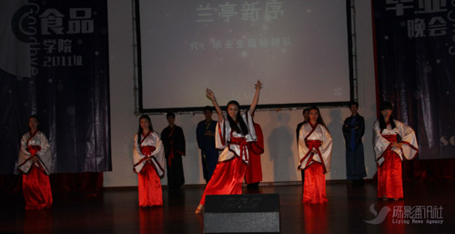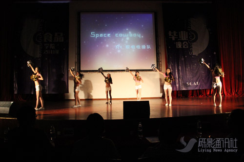 晚会以院啦啦操队一首《Space coeboys》火热开场。随后,毕业生国标舞队的《兰亭新编》,在热情奔放的国标舞中溶入了古风元素,引来观众的阵阵惊叹。话剧队的《女神和女汉纸》演绎出宿舍四年来的点滴小事。歌队抒情柔美的歌声传达出他们美好的祝福,流舞激情四射的舞蹈也获得了毕业生们的阵阵掌声。晚会的最后以毕业生的《毕业生很忙,别腾鸡》,创意结尾。女生们活泼的牛仔舞,加上男生穿上小鸡睡衣在台上蹦跳,现场欢笑声不断。晚会节目形式多样,风格各异,贯穿了2011级毕业生在华农的欢笑、泪水、追求与不舍,激荡着毕业生们奋发图强的希望和对青春张扬的歌唱,而师弟师妹们更是为了给学长们在校的最后一次晚会倾情演出。