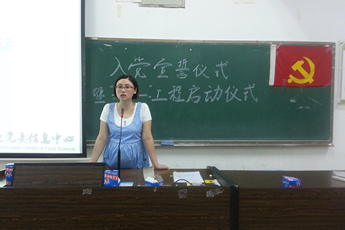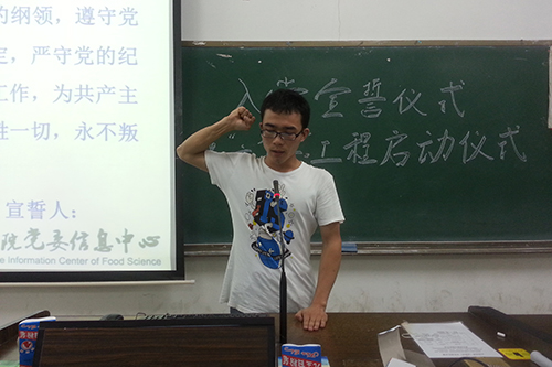 经过党校培训、群众调查、党章考试、辅导员谈话一系列环节,我院共有50名思想成熟的优秀积极分子被党组织吸收为预备党员。为了更好地修炼预备党员的党性,接下来的一年,50名预备党员将进行“六个一工程”。6月19日晚上7:30,食品学院党委信息中心(下称“党信”)在教五C202室举行预备党员入党宣誓仪式暨“六个一”工程启动仪式。党委信息中心指导老师孙华、预备党员、各支部支书出席此次会议。