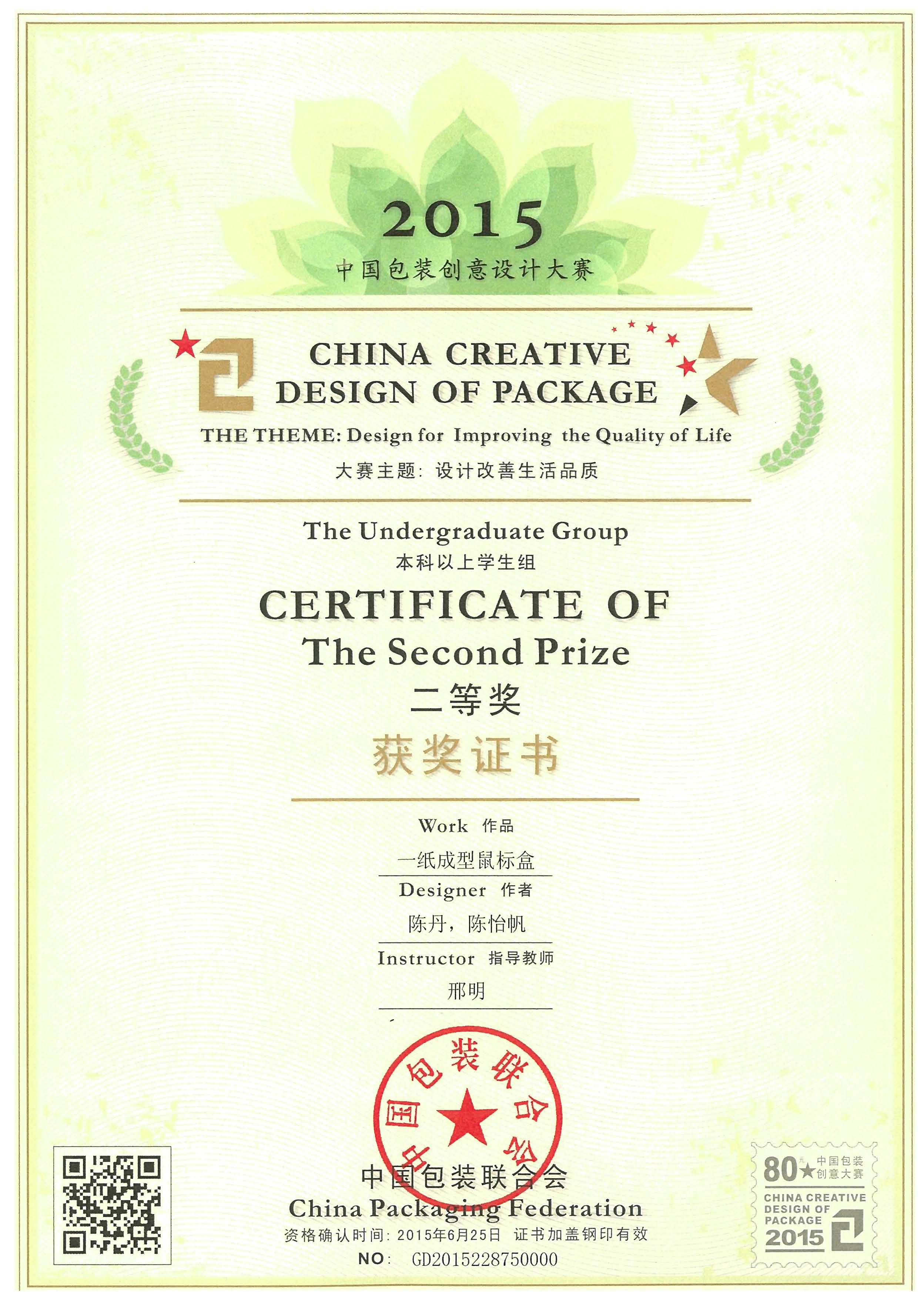 中国包装创意设计大赛由中国包装联合会主办,《中国包装》杂志社、《包装世界》杂志社、中国包装创意设计中心等部门联合承办,是包装行业的最权威赛事之一。自2010年举办至今,中国包装创意设计大赛已经连续举办了五届,成为当前中国包装行业、包装工程教育界、视觉平面设计教育界备受瞩目的重要专业竞赛活动。大赛分为专业组、应届毕业研究生组和本科以上学生组、专科学生组。