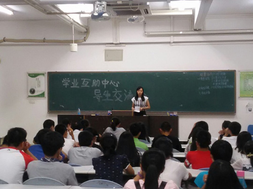为更好帮助新生过渡假期并适应大学生活,学业互助中心与9月20日在第五教学楼B栋404室举行了2015级新生与导生的交流见面会。2015级50位新生代表和3位导生参加了本次会议,2014级辅导员李迪老师也出席了见面会。