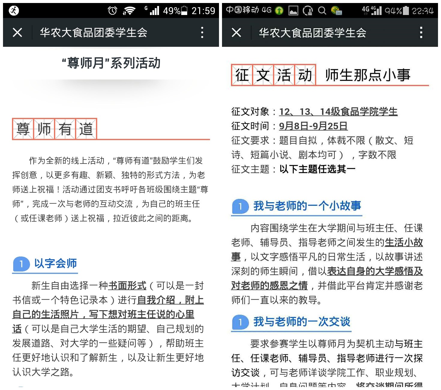 在搭建师生线下交流平台的同时,我院团委9月8日-25日面对全院学生开展了“师生那点小事”线上征文比赛,旨在让让更多学生们留意平日课堂内外与老师之间的互动与交流,学会以最朴实无华的文字于细微处感恩师长、尊敬师长。