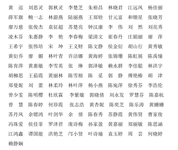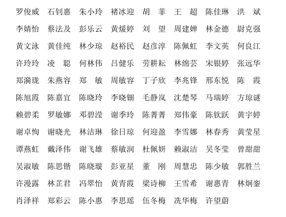 李子敏 吴 娜 陈家俊 辜仕林 卓秋婷 赖玉建 龚小莹 张素芬