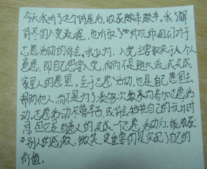 图为:参加分享会同学会后感受