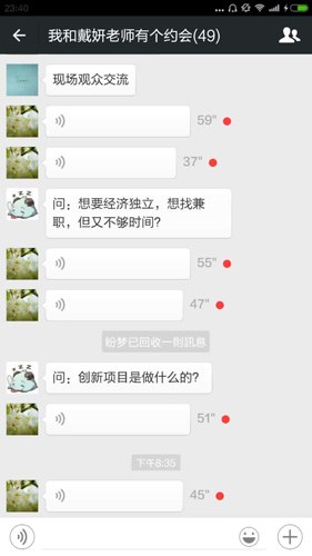 嘉宾分享经验环节后,同学们纷纷踊跃地提出了自己的疑问。戴妍老师建议道,大一新生应学会在他人面前展示自己,展现良好地自信,多了解多接触,趁着年轻,大胆地去做尝试。本期约会线下现场气氛热烈,线上大课堂同样热情高涨。