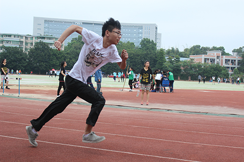 火红塑胶场上,各项激烈的赛事有条不紊地进行着,加油声、欢呼声、呐喊声此起彼伏,不绝于耳。运动员们都竭尽全力的展现着自己的矫健身姿,为班级的荣誉而战斗。每届运动会的赛场上总有那么一两颗闪亮的运动之星,这一届也不例外——13级生物工程1班的吴英滔在去年的院运会中勇夺男子组1500米冠军和5000米亚军,已进入校队的他在本次运动会中轻松摘得男子组1500米桂冠,采访中吴英滔告诉记者自己将备战广州大学生长跑锦标赛希望能学到更多东西。