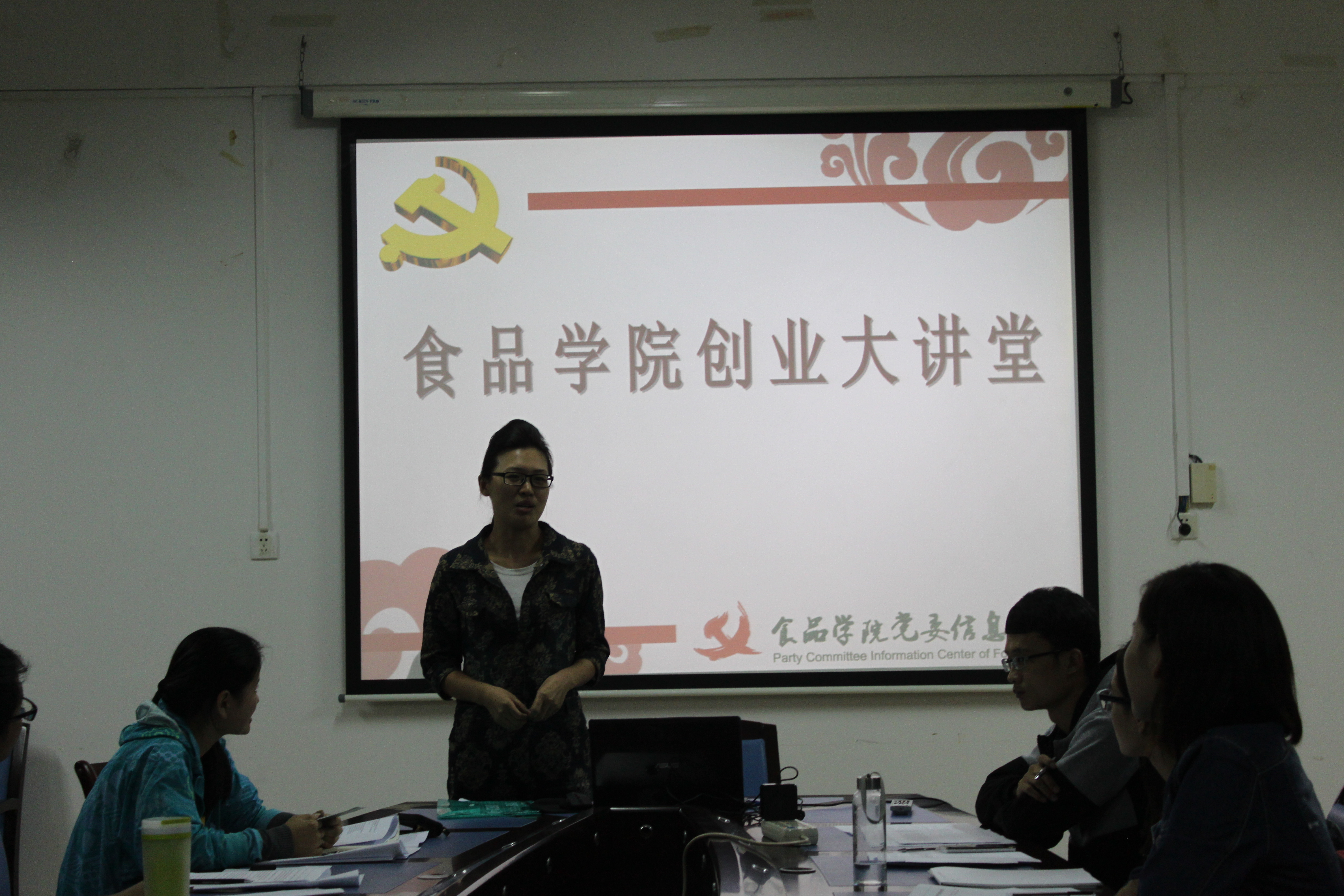 作为食品学院大学生创业的优秀代表,食品学院2015届毕业生、广州万物生健康产业有限公司的负责人张铁丹女士也在大讲堂上作了创业心得分享。