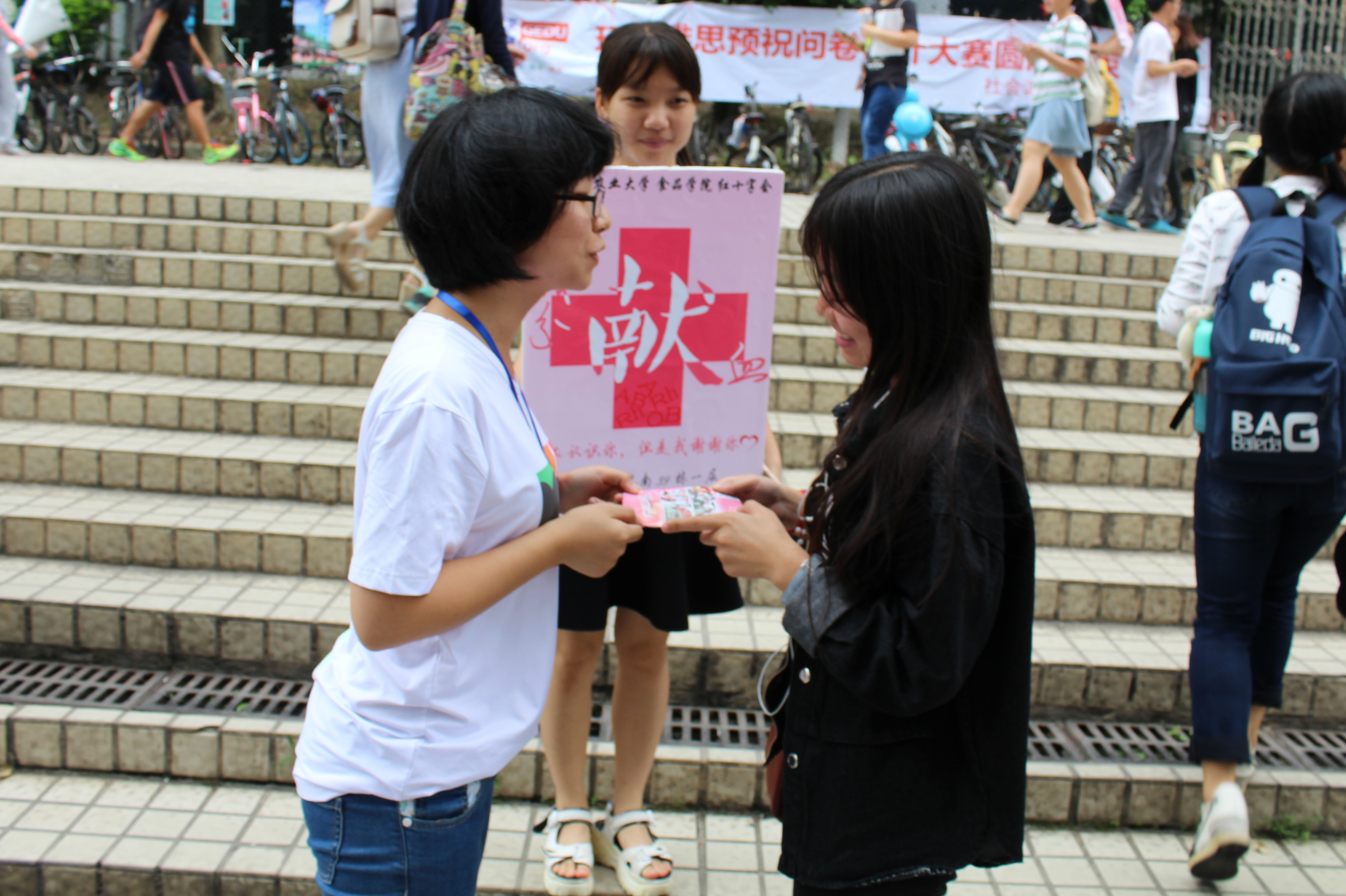 次日中午,食品红会理事们在荷园饭堂门口派发宣传资料并给路过的同学们宣传和普及献血知识。此活动得到不少同学的关注,其中一些同学反映,食品红会的普及宣传活动让他们了解了更多献血知识,也了解到不少目前无偿献血面临的问题,并表示会积极参与献血活动且鼓励身边更多人加入献血行列。
