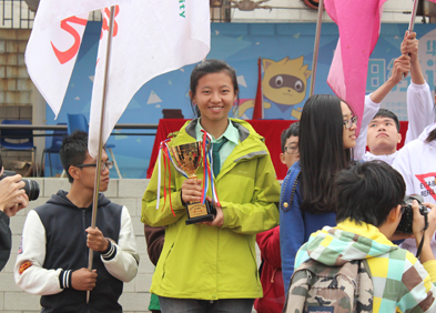 寒风习习,但丝毫不能影响我院运动健儿们的斗志。赛场上我院健儿斗志昂扬,佳绩连连,其中我院女将成绩备受关注。我院2013级生物工程2班的陈锡敏连续三年蝉联女子跳远冠军,同时取得今年女子三级跳远冠军。2014级食品科学与工程2班的练皓婷同学连续两年蝉联铅球项目,女子4✘ 400接力赛同样再次稳夺冠军宝座。练皓婷告诉记者这一次的成绩出乎她的意料,“我很高兴我可以打破自己的记录,与去年相比有了更大的进步,可能是我因为有一颗热爱运动的心吧。”