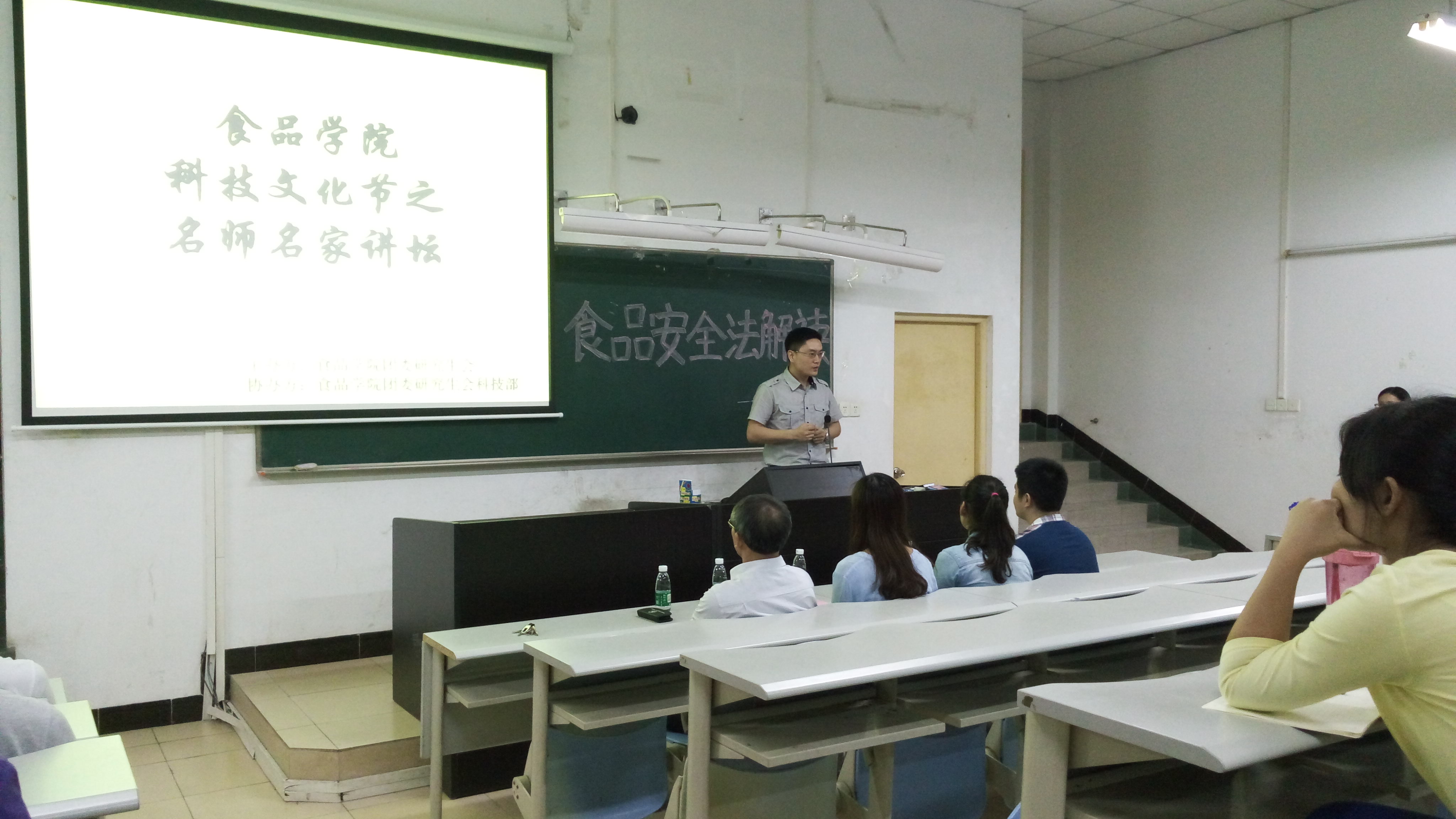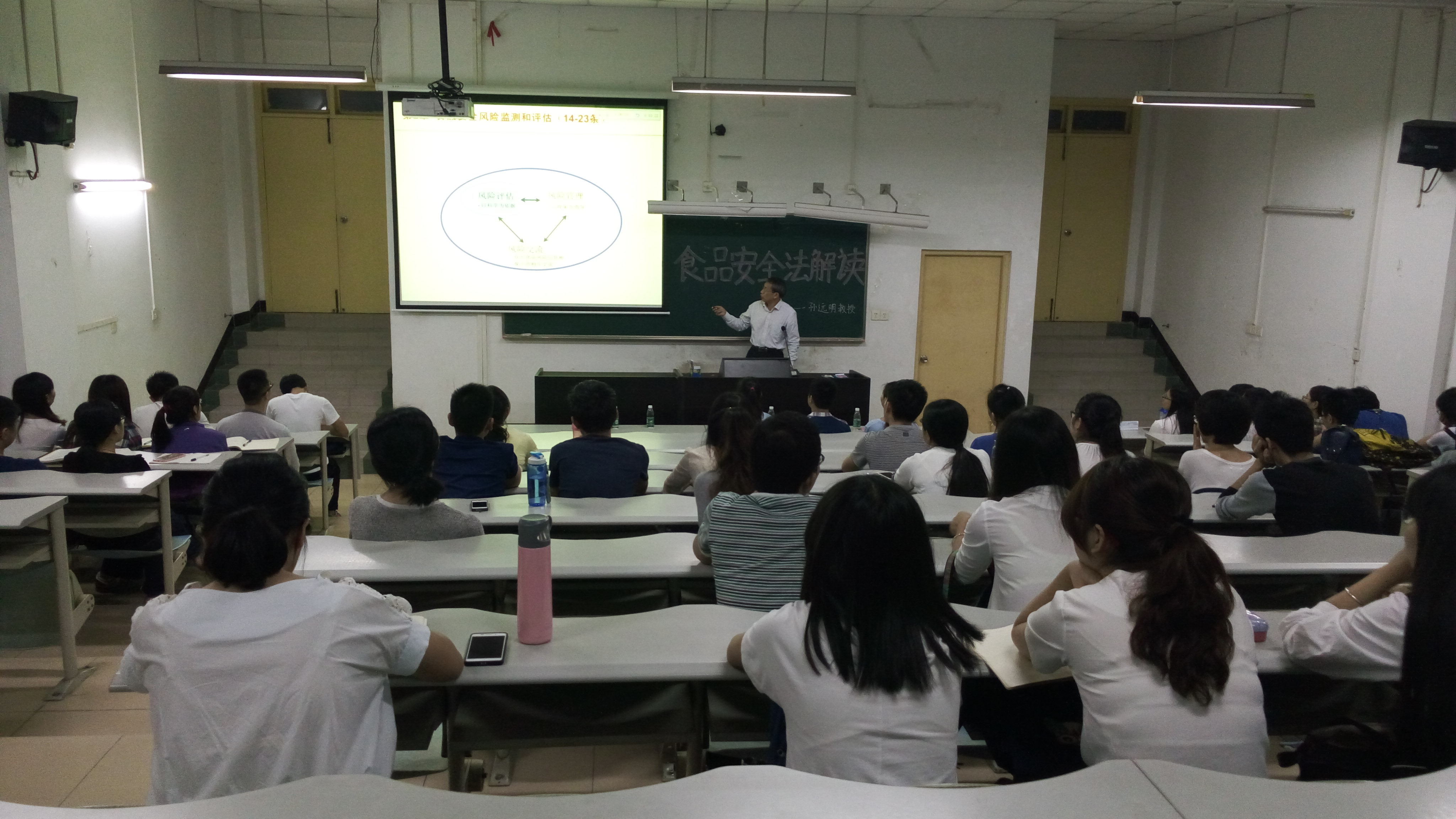 开幕式后,食品学院教学名师孙远明教授就《食品安全法》作专题报告。他重点讲解了《食品安全法》的修订历程,对2015新版《食品安全法》进行了深入解读,帮助广大研究生厘清了《食品安全法》与《农产品质量安全法》的关系。他希望,作为从事食品行业的研究生,同学们能够知法,守法,用法,用自己的实际行动捍卫国家的食品安全,做国家的食品安全卫士。孙教授的讲课深入浅出,通俗易懂,同学们受益匪浅。