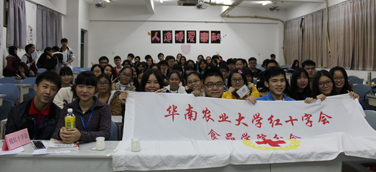 为了丰富同学们的红十字急救包扎知识,掌握基本操作技能,在意外事故现场能立即进行自救和互救,12月11,华南农业大学食品学院红十字会(下文简称:食品红会)在第五教学区b栋举行了第二次会员培训大会。出席本次大会的嘉宾有校红会代表以及各兄弟学院红会代表。