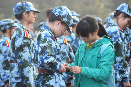 会上,李迪老师着重强调了仪容仪表的问题,“穿上军装就是半个军人。”李迪老师说。李迪老师让同学们互相整理对方的仪容仪表,包括女生头发要全盘进帽子里,男生头发手掌压上去不能超出手掌高度,腰带裤腿等细节也都希望同学们能做到标准。各助班阳光员也对同学们进行指导。李迪老师还特别强调了站姿、坐姿以及守时的问题,并要求2015级全体同学认真做好军训内务整理工作。随后,教导员戴妍对全体同学的仪容仪貌进行了检查。一直到结束,全体同学的精神风貌有了明显的提升。