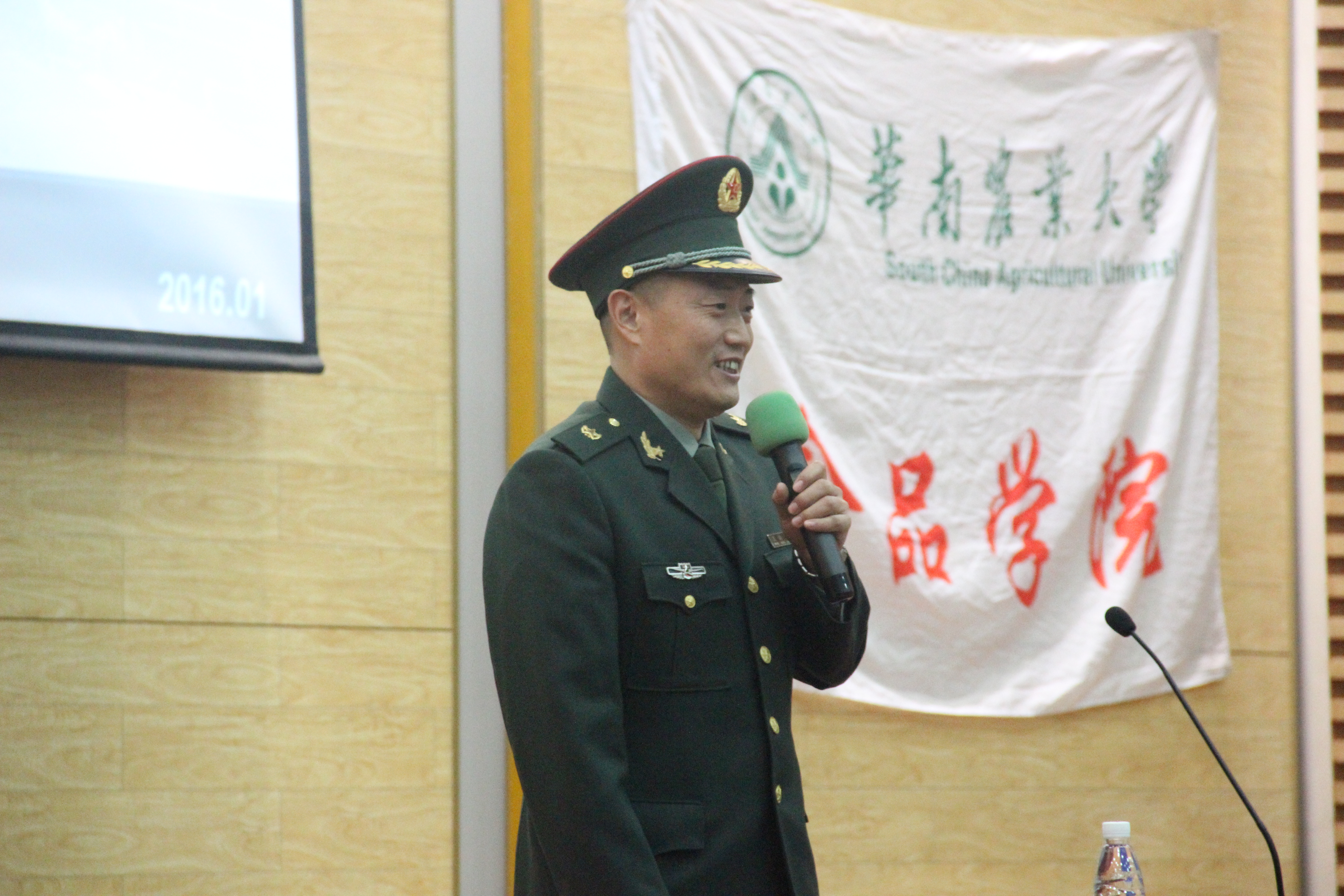 2016年1月9日,食品学院在真维斯学生活动中心举行2015级军训动员大会,随后,一场生动精彩的国防教育讲座给参训学生带来深刻洗礼。
