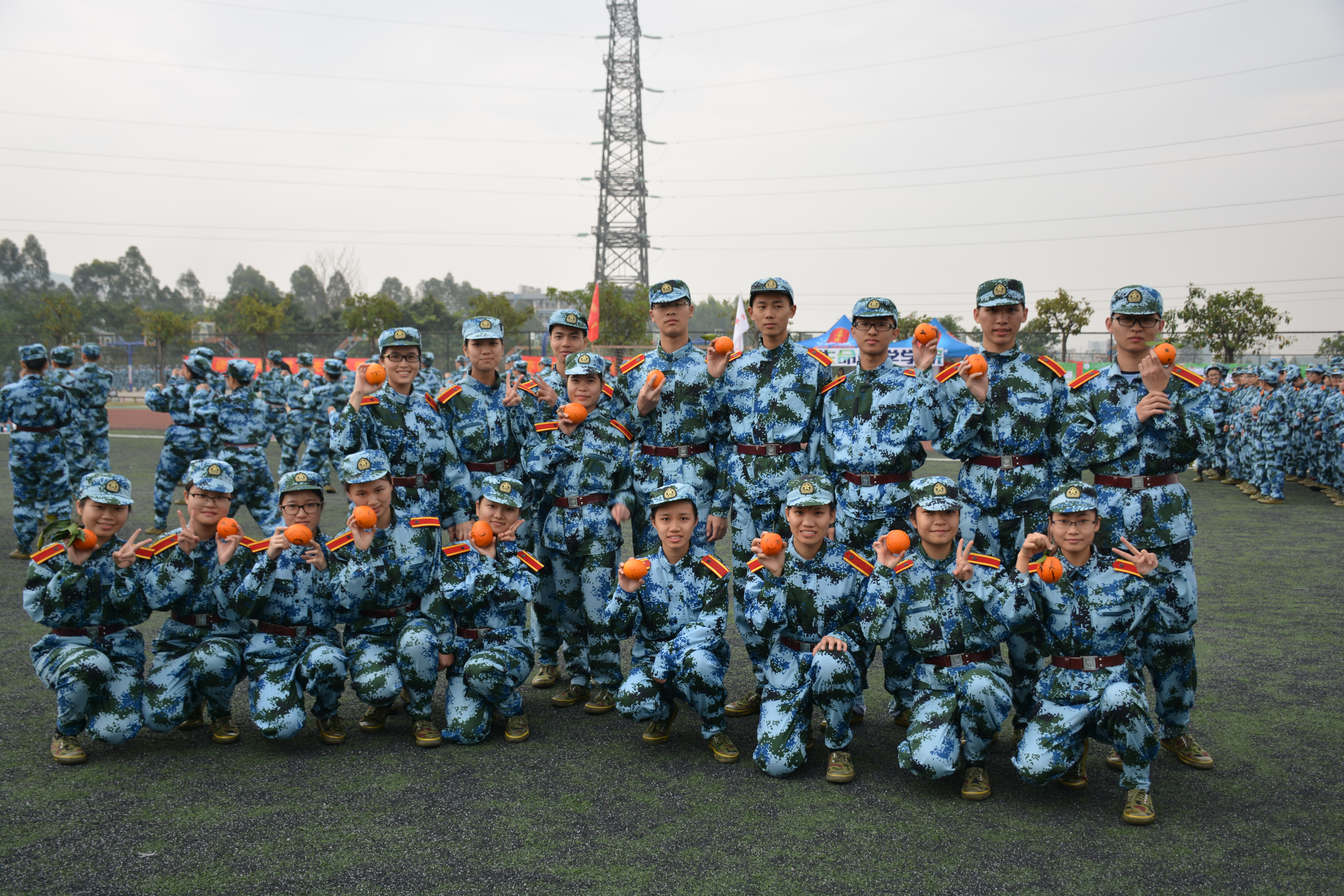 14日上午,操场中央出现了一排画着各种表情的橙子。龇牙的、调皮的、害羞的,画上表情的橙子格外引人注目。原来这是2015级包装工程二班的班主任罗卿心老师特意带给同学们的礼物。在被问到为什么要送同学们橙子时,罗老师说道:“橙子有很多寓意呀!比如与‘诚’同音,希望他们诚实诚信;橙子也是一种很阳光的水果,希望同学们一直保持阳光的心态。最主要的是,橙子能补充维C,军训中的学员们也要特别注意身体。”同学们表示“表情”橙子给军训增添了一份浓浓的乐趣。