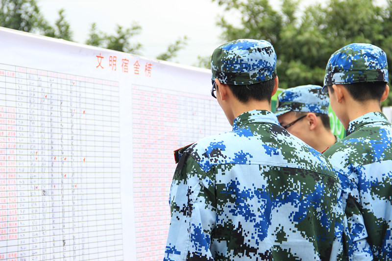 负责评分的教官都非常仔细地检查三间宿舍的内务情况,用手去擦拭桌面、门框等。蔡汇民副处长在走出宿舍的时候对教导员说:“食品学院做得很好!”