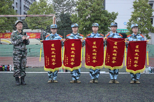 据了解,我院为了整体提升内务,设置了“文明宿舍榜”,将每日的内务检查结果公布在榜上,让同学们清楚看到自己宿舍内务成绩的趋势,并做出相应调整。此外,在每日训练结束之前,教导员戴妍都会给当天内务成绩前五名的宿舍颁发锦旗,以此鼓励。