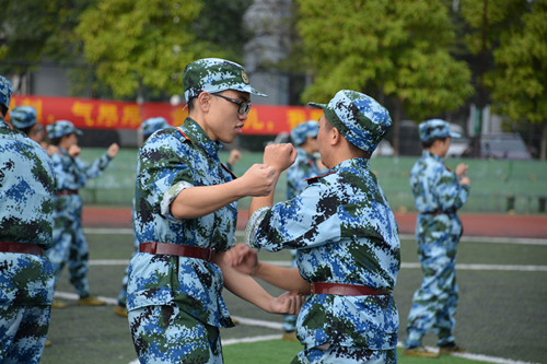 训练场上,同学们们展示着训练成果。擒拿拳,一招一式,都隐藏着强劲的力量;一声声歇斯底里的呐喊,象征着激情与豪迈,展现了同学们良好的精神面貌与奋发向上的昂扬斗志。15级辅导员戴妍老师表示,没有淋过雨的军训是不完整的,希望同学们能够发扬艰苦卓绝的奋斗精神,好好地去度过剩下几天的军训,留下一个令人难忘的军训回忆。(文/曾红红 图/砾影新媒体中心)