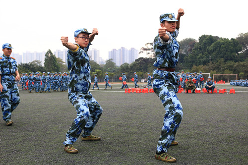 1月15日下午,细雨绵绵,但寒意却依然阻挡不了同学们刻苦训练的热情,他们冒着细雨,在启林南操场,接受了营长以及教官们的检验——擒敌拳展示。