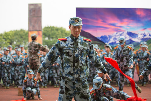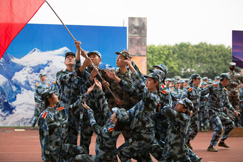 飞舞的红色缎带、轻盈而有富含力量的舞步,与嘹亮的歌声相得益彰。《金色的理想》,红歌串烧《唱支山歌给党听》《国际歌》《保卫黄河》,一词一句、一举手一投足,包含的都是深切的爱国情怀。歌咏队一员,来自十营二排的陈绵绵告诉记者,他们每天都要训练,前几天觉得很累,但渐渐适应,觉得其实军训也可以变成一种享受,“累,但是很充实。”