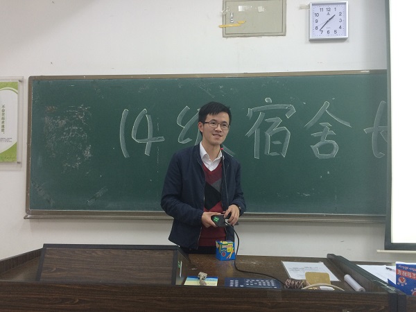 3月29日,2015-2016年第二学期食品学院2014级宿舍长会议于教五B栋205课室顺利举行。学院2014级辅导老师李迪老师,2014级级委以及2014级宿舍长参加了本次会议。为使食品学院宿舍管理工作更上一个台阶,辅导老师李迪老师发表了重要讲话。