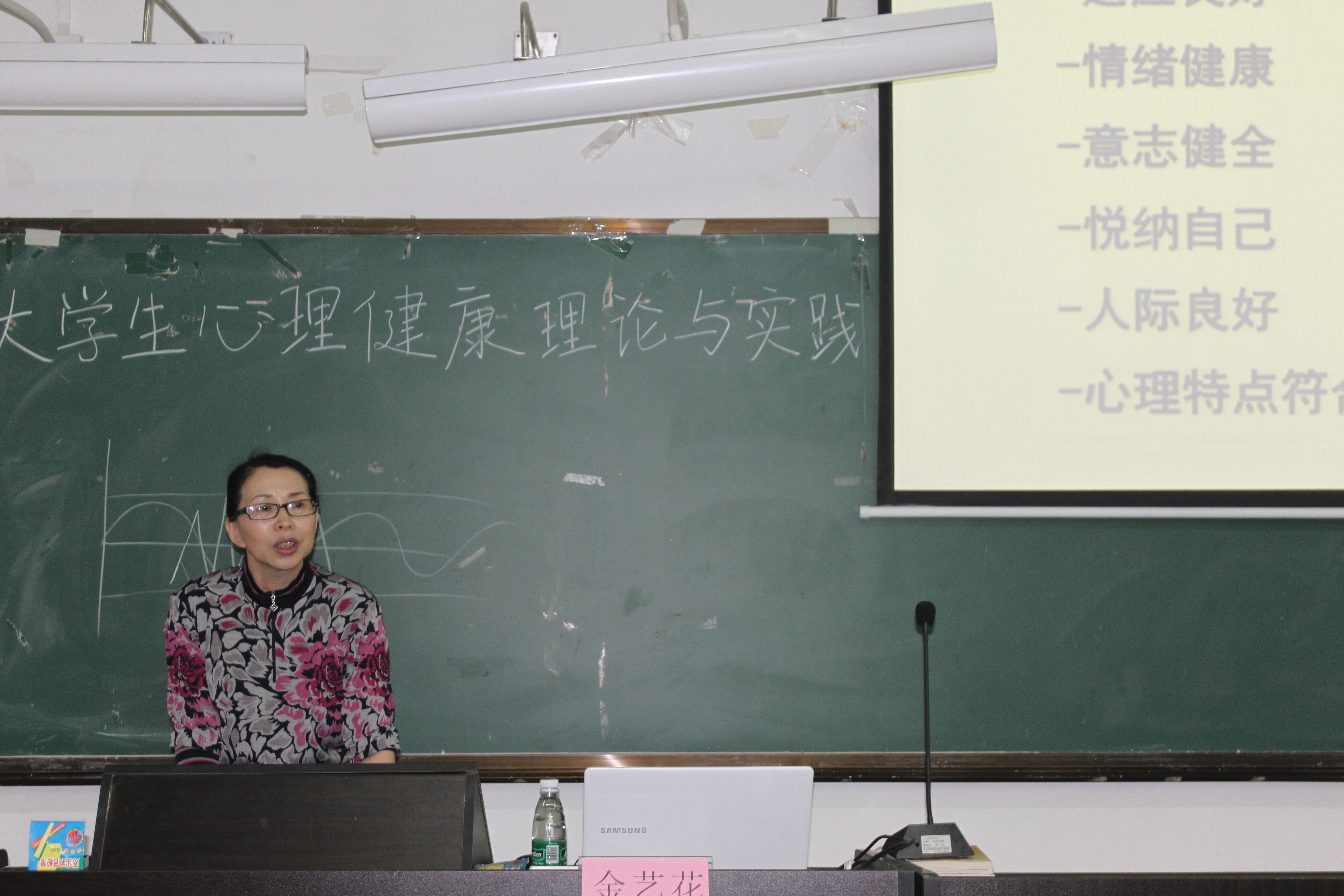 金艺花副教授从心理健康与健康标准、心理危机与识别干预两个方面进行阐述,分析大学生具备知识化程度高,但社会化程度低;情绪波动度高,但自控力程度低;自我认可度高,但人际协调力低;成才急切度高,但抗挫折能力低等特点,由此透析出大学生常见的心理问题,通过栩栩如生的例子说明了心理健康教育的重要性。她指出,学校、教师对心理危机事件应做到及早预防、及时疏导、有效干预与快速控制,并遵循生命至上、亲属参与、全程监护、分工协作等原则。
