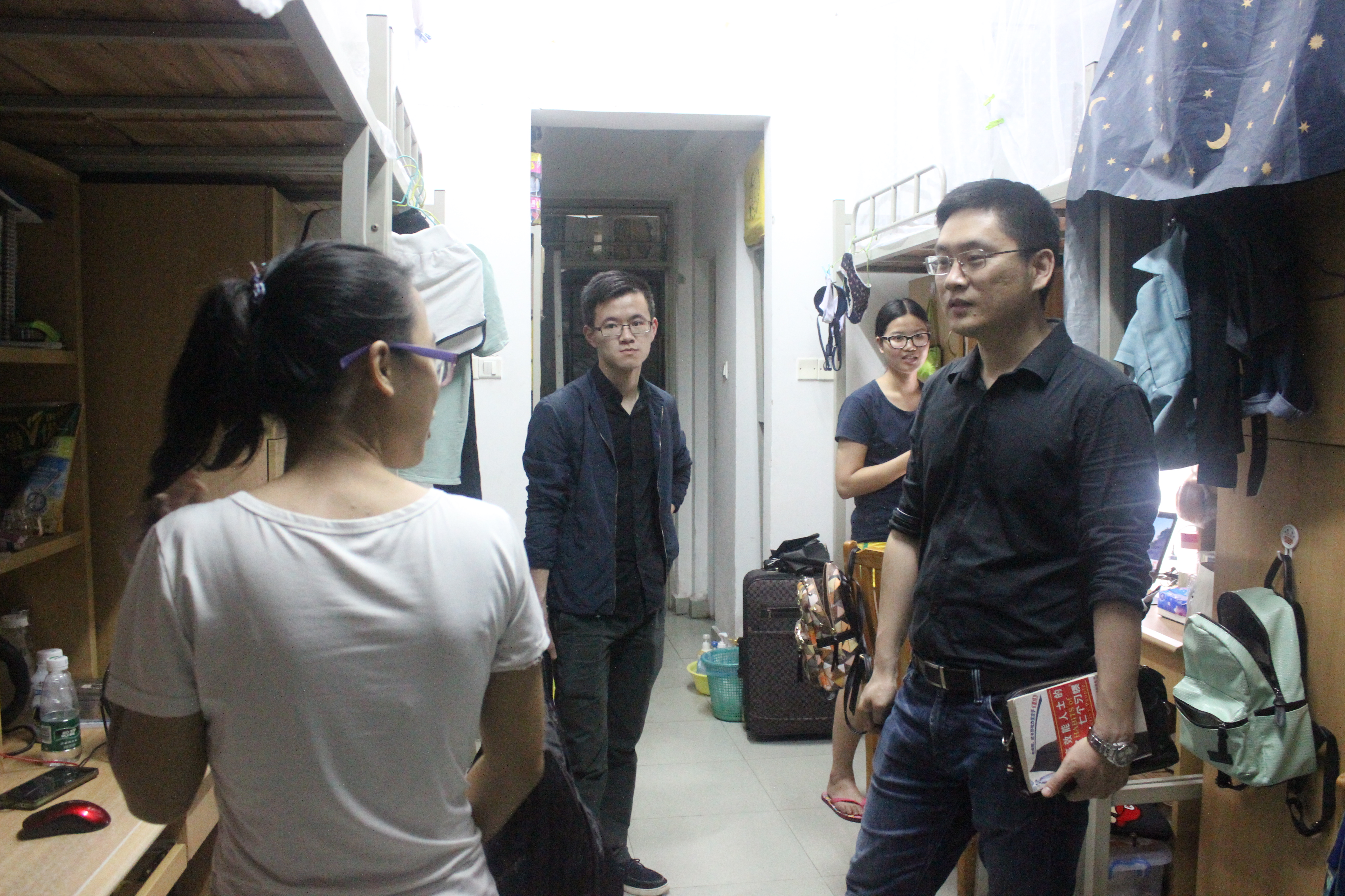为了杜绝学生宿舍用电安全隐患,为学生营造安全和谐的宿舍生活环境,4月14日晚,食品学院党委副书记鲍金勇以及全体辅导员走访了全院学生宿舍,提醒大家注意用电安全及宿舍卫生。