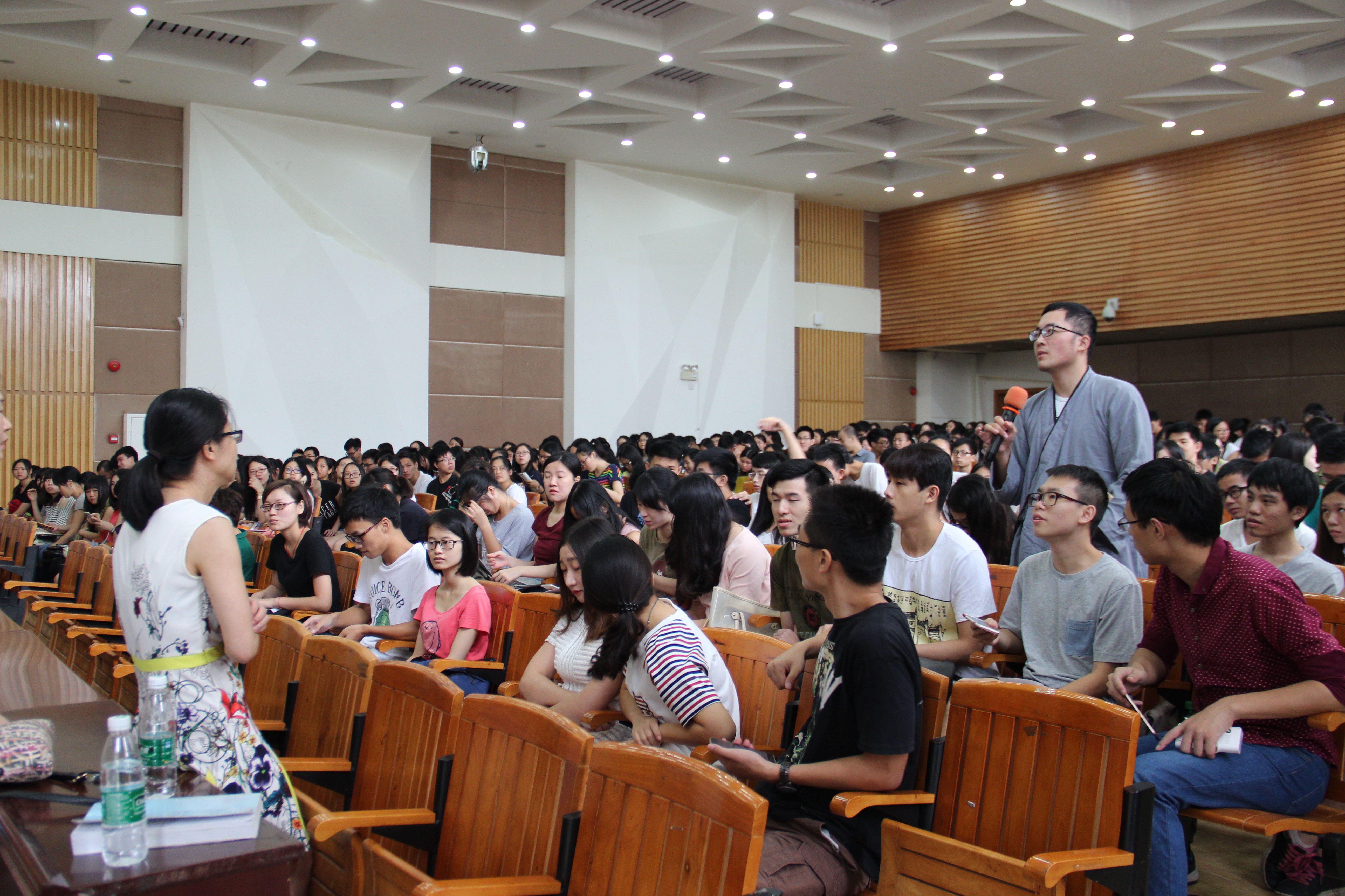 曾春燕老师的发言主要围绕“毕业选课学分要求及相关事项”展开。张晓群老师则详细地讲解了重修、补考、转专业、学籍等相关事项,解答大家这方面的疑虑。答疑环节,同学们踊跃发言,就选课学分等方面疑问向老师提问,老师们也一一作出了明确的答复。陈巍老师希望大家好好体验大学生活,不虚度时光。