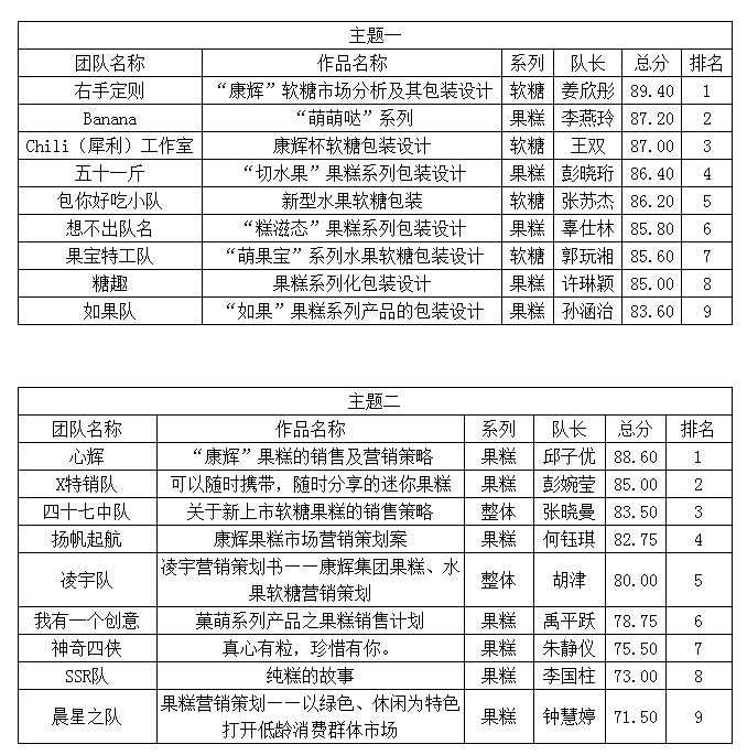 首届“康辉杯”食品包装设计与销售策略创新大赛从2016年9月开始举办,2016年11月截止。初赛共收到作品81份,经过评委评审后,“‘康辉’软糖市场分析及其包装设计”等共18份作品进入决赛。预祝各队伍在决赛中获得好成绩。