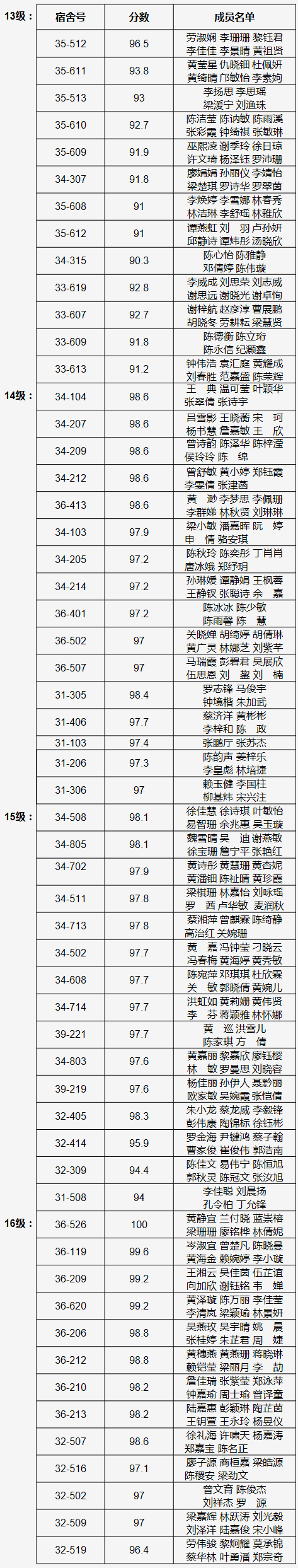 食品学院2016年12月宿舍评比优秀宿舍名单