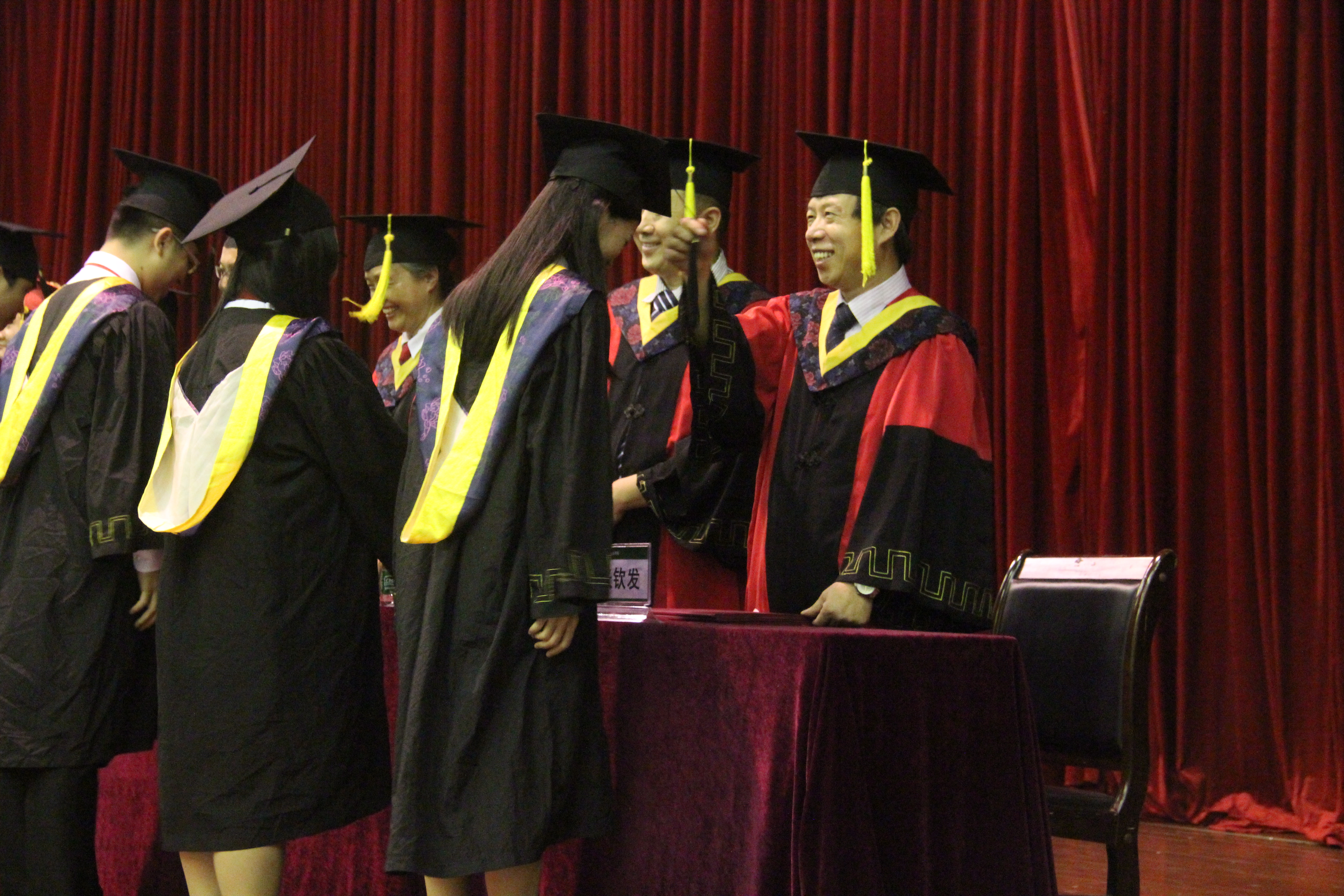 最令人激动的便是学位评定委员会委员给毕业生拨学士帽上的流苏,并且颁授学位证书。这是每一位学子心中的梦,是他们奋力前进的一股强劲动力。大会以激昂奋进的华农校歌画上圆满句号,那动人的音律定会久久萦绕在即将离开学校怀抱的学子心中。