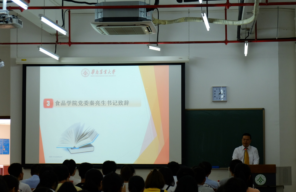 开学典礼后,雷红涛院长向新生们深入全面地介绍了食品学院情况。雷院长从历史沿革,学院架构,师资情况,办学层次,平台情况,科学研究,国际交流,学科水平几个方面进行介绍,令新生们对学院有了进一步的认识,也更加认可了自己的专业。