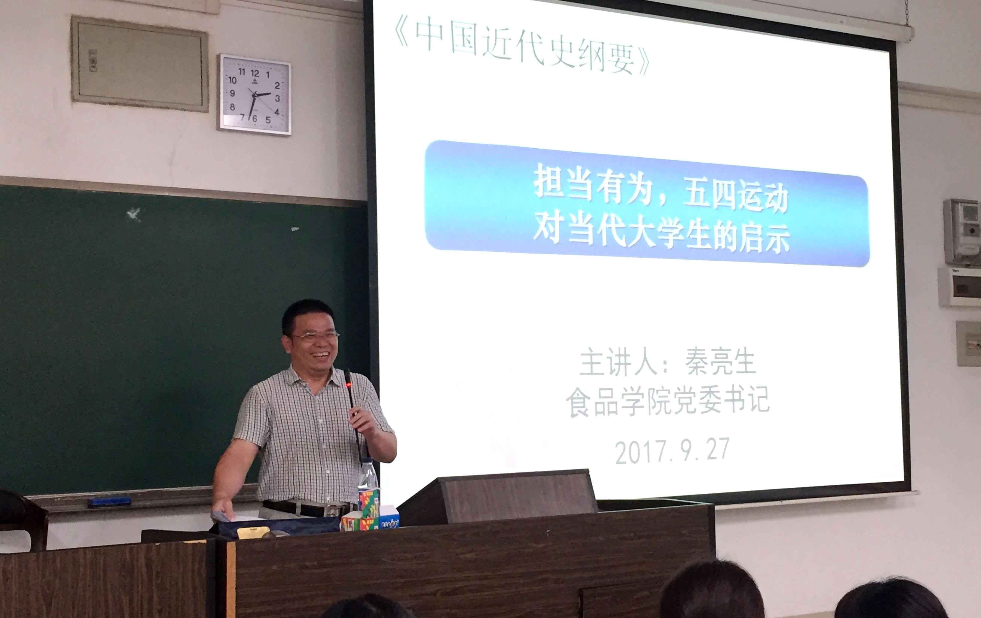 9月27日下午和晚上,我院党委书记秦亮生和院长雷红涛分别走进本科生课堂,在第五教学楼为我院2017级本科生讲授新学期第一堂思想政治理论课。