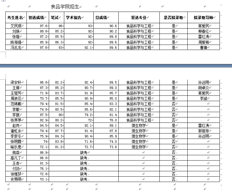 根据《华南农业大学2018年全日制博士研究生招生简章》和《华南农业大学食品学院2018年全日制博士研究生招生实施细则》,学院博士研究生复选考核专家组对申请考生的进行了复选考核工作。通过申请考生的专业笔试、学术报告,按照总成绩由高到底确定拟录取名单,决定拟录取艾民珉、刘焕等15名考生,现将有关情况予以公示(名单附后)。