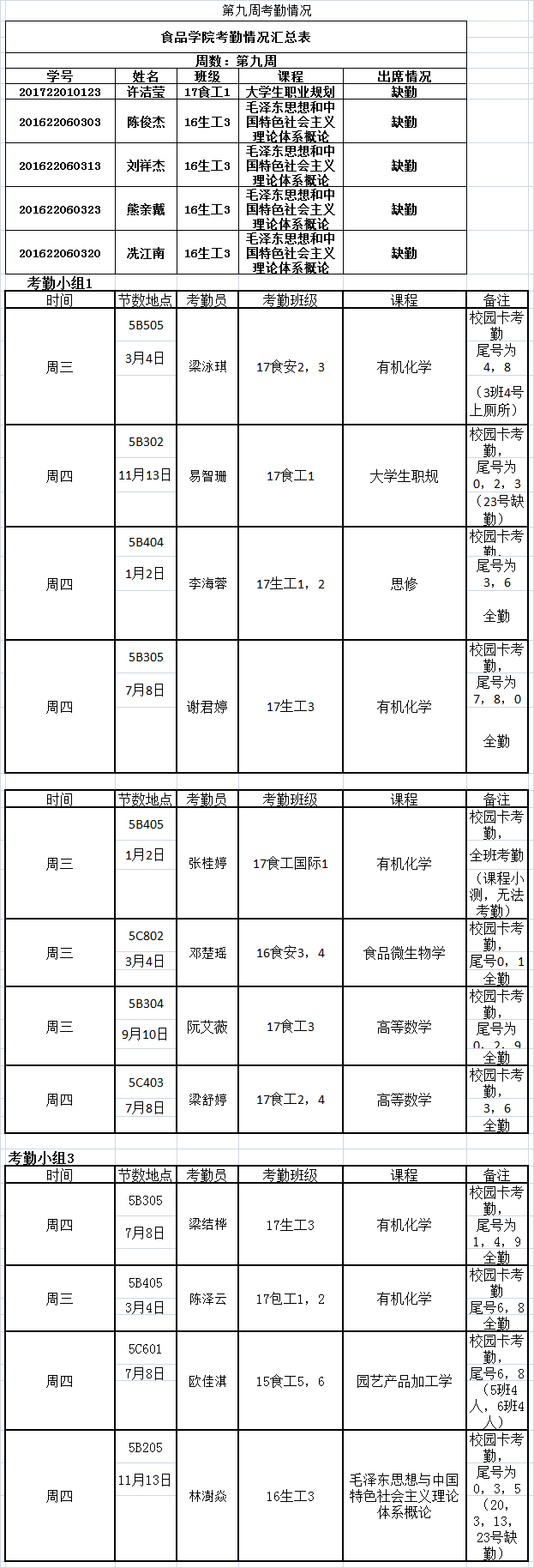 学风建设学生考勤情况汇总