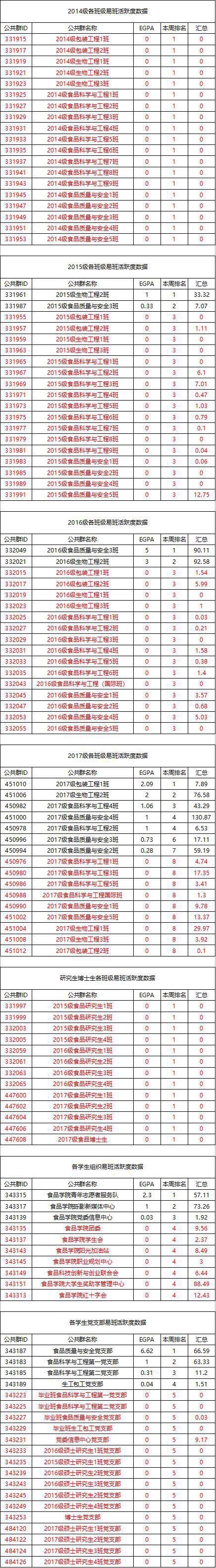 为更好的服务我院人才培养工作,加强网络思想政治教育工作内容,我院积极贯彻落实学校易班相关工作要求,积极稳步推进易班工作。截止18年6月17日,我院共有88个学生班、10个学生组织和20个学生党支部在易班建班并参与互动,我院今年五月份易班共建指数为136.8,位居学校第一名,其中活跃指数为135.2153。为更好促进我院易班建设和平台使用,现将我院各班级、各学生组织、各党支部易班活跃度数据(18.06.11-18.06.17)公示如下: