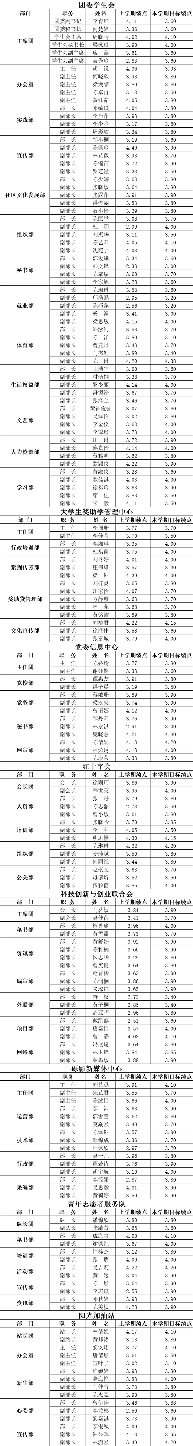 为更好地了解食品学院各组织干部的学习情况,加强学院学风建设并起到督促学习作用,现对各组织干部上学期绩点与本学期目标绩点进行公示:
